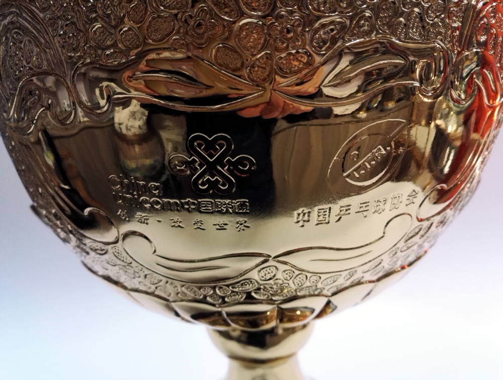 北京市金屬工藝品廠有限責任公司為中國聯(lián)通制作的”乒乓在沃“獎杯