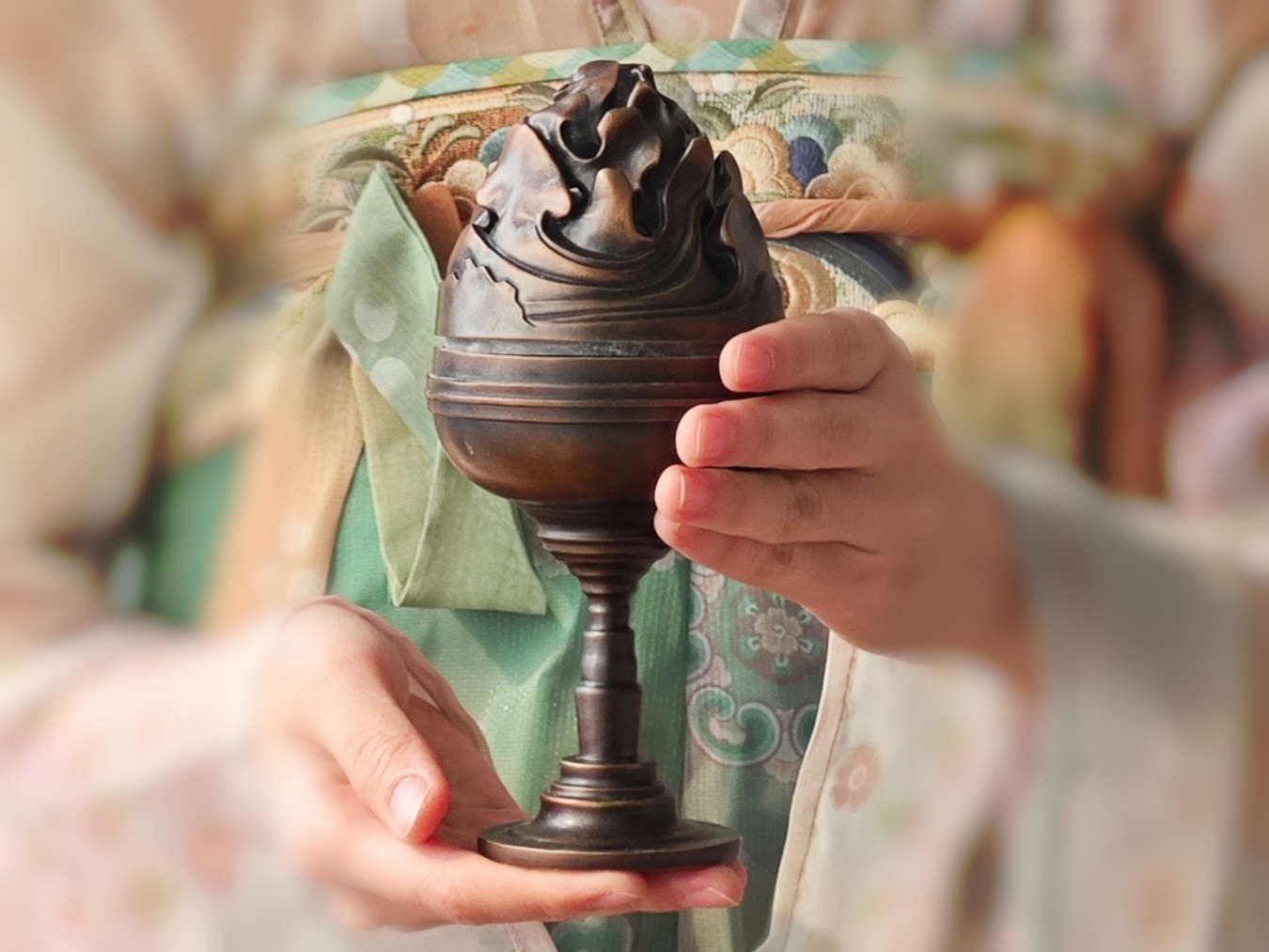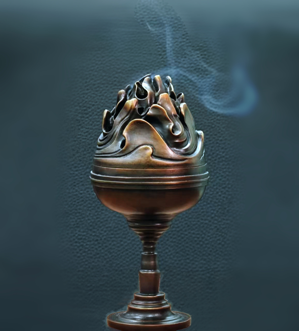 金屬公司出品的博山爐頂部高而尖,仿佛錯落分布的群山,匠人巧妙的借山勢鏤孔,當爐中的香料點燃時,香煙從鏤孔處裊裊而出,有如仙氣繚繞在山巒間,給人以置身仙境的感覺,加上幽香陣陣,使眼前的“仙境”不僅有形象,而且有氣味。除了焚香,博山爐還可以用來熏衣、熏被,以達到除味、避穢的效果。