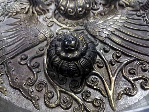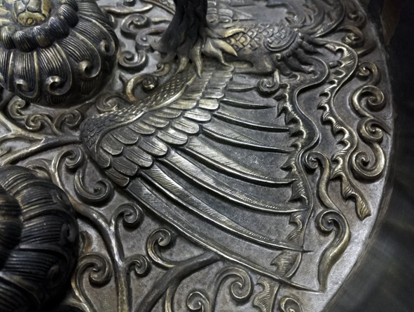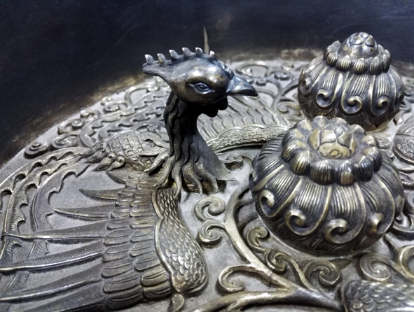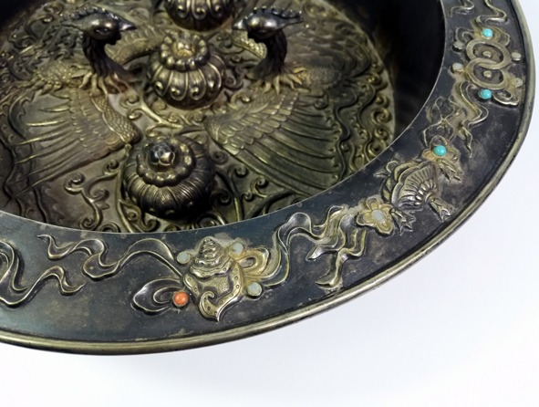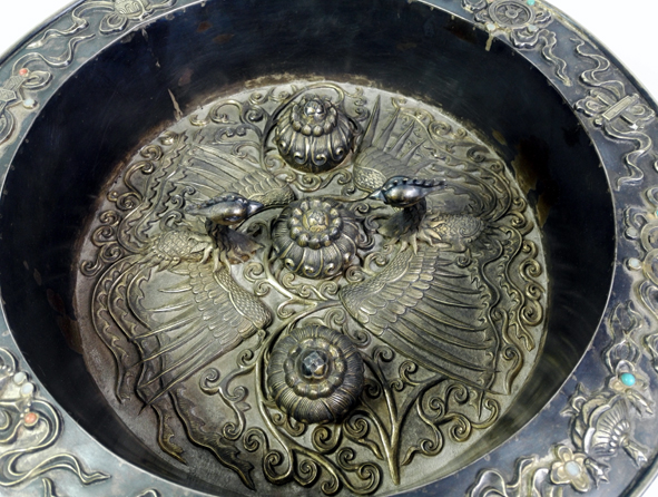純銀鏨雕仿故宮金立雙鳳盥盆